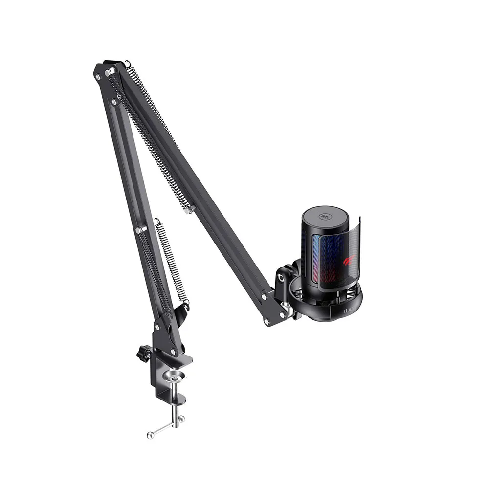 Microfone Gamer Havit GK50 Pro RGB: USB-C, Cardioide, 192KHz/24bit, Redução de Ruído e Braço Articulado!