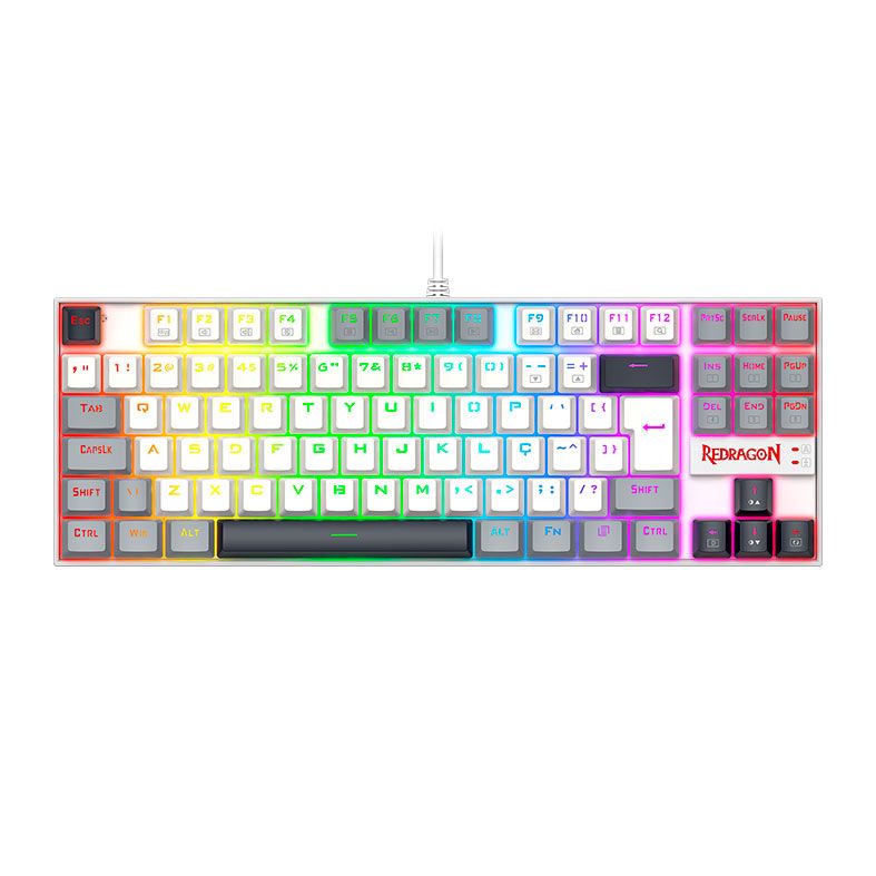 O Redragon Kumara K552WGL-RGB mantém o legado de um dos teclados mais icônicos do mundo gamer — agora com um visual tricolor moderno e sofisticado nas cores branco, preto e cinza.